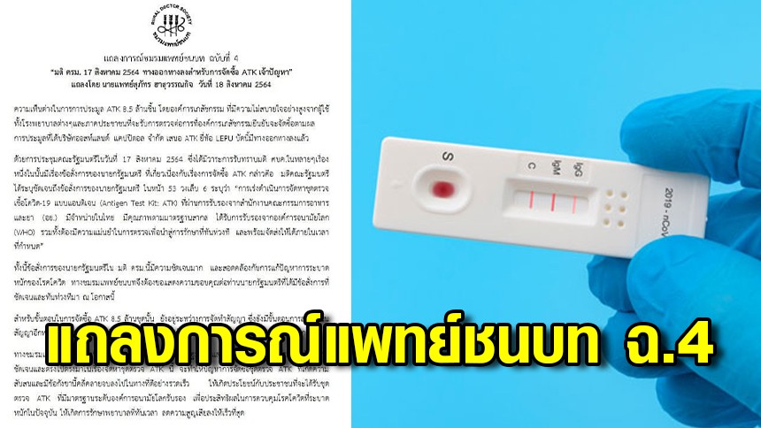 ชมรมแพทย์ชนบทออกแถลงการณ์ ฉบับที่ 4 ชี้ทางออกในการจัดซื้อ ATK เจ้าปัญหา