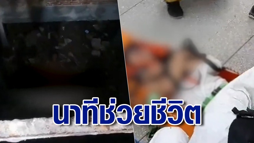 ชายแก้ผ้าพลัดตกปล่องฐานอนุสาวรีย์ชัยฯ จนท.ช่วยทุลักทุเล นำตัวส่ง รพ.
