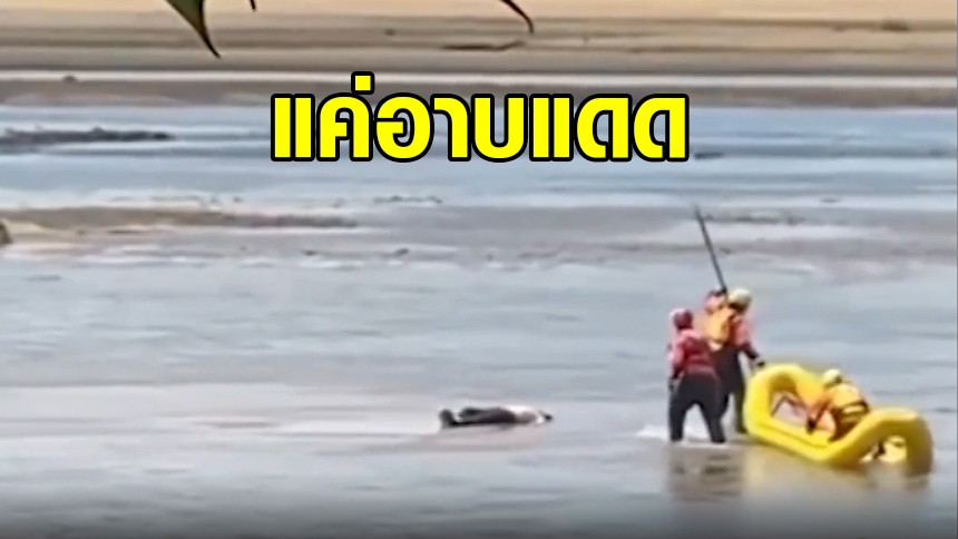 หลอน ร่างคนนอนเกยทรายกลางแม่น้ำ ตร.สหรัฐฯ ลงพิสูจน์ ที่แท้แค่มาอาบแดด
