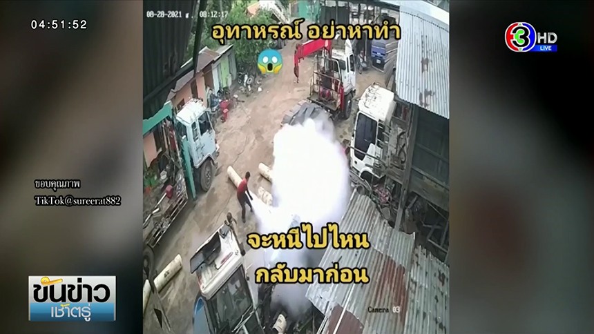 อุทาหรณ์ หนุ่มตัดหัวถังแก๊ส ระเบิดพุ่งทะลุบ้าน