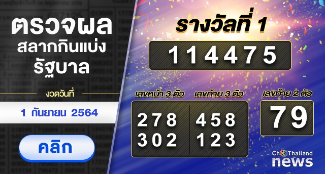 ผลสลากกินแบ่งรัฐบาล งวดวันที่ 1 กันยายน 2564