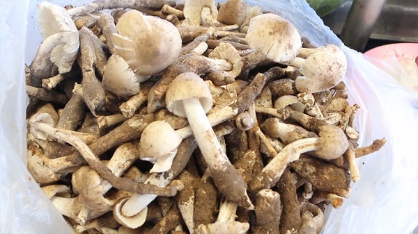 สอบถามแม่ค้าในตลาด บอกว่า ขณะนี้ในพื้นที่ได้มีฝนตกลงมาโปรยปรายทั้งวันทั้งคืน ทำให้มีเห็ดป่าสารพัดชนิดออกมาจำนวนมาก โดยเฉพาะเห็ดโคนที่ชอบสภาพอากาศแบบนี้ ดังนั้น 2-3 วันนี้ จึงมีเห็ดโคนผุดขึ้นมาให้ชาวบ้านออกไปเก็บมาขายจำนวนมาก