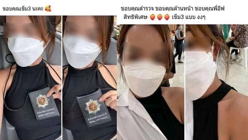 สาวโพสต์อวดได้ฉีดวัคซีนเข็ม 3 พร้อมโชว์บัตรตำรวจ โซเชียลจวก ถามได้โควต้าจากอะไร? ล่าสุด โฆษกสำนักงานตำรวจแห่งชาติ ยืนยันตำรวจไม่มีสิทธิเอาวัคซีนเข็มสาม ให้บุคคลในครอบครัวหรือคนรู้จัก