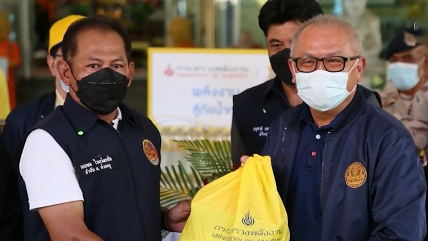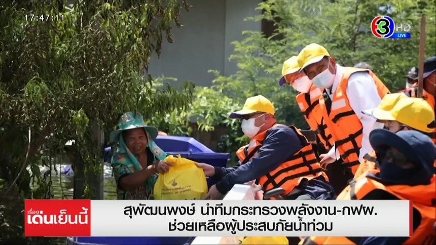 รองนายกรัฐมนตรีและรัฐมนตรีว่ากระทรวงพลังงาน นำผู้บริหารกระทรวงพลังงาน และกฟผ. ลงพื้นที่จังหวัดลพบุรี และนครปฐม เพื่อให้กำลังใจ พร้อมมอบถุงยังชีพ และน้ำดื่ม “น้ำใจ กฟผ.” ช่วยเหลือผู้ประสบภัยน้ำท่วม