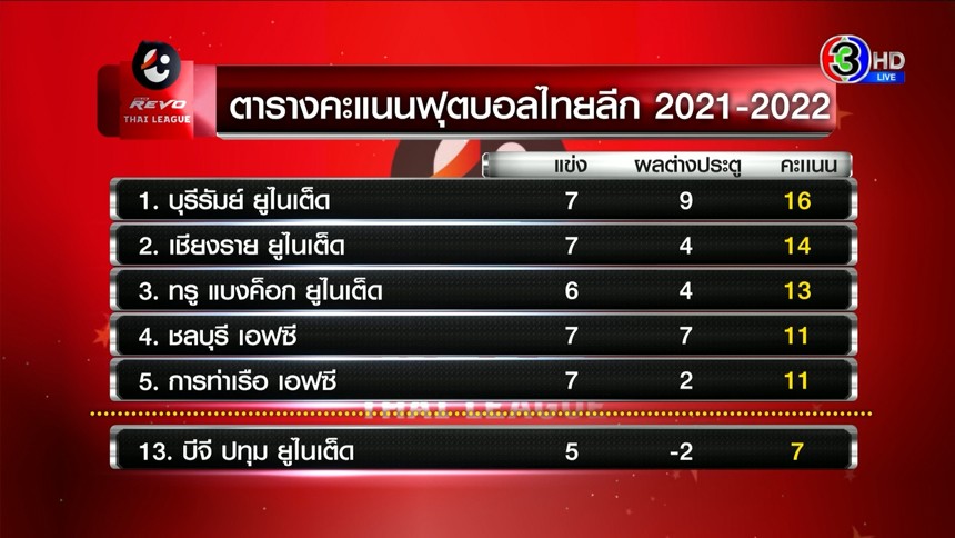ผลฟุตบอลไทยลีก 2021-22 วันอาทิตย์ที่ 10 ตุลาคม 2564 คู่บิ๊กแมตช์ การท่าเรือ เอฟซี พบกับ บุรีรัมย์ ยูไนเต็ด