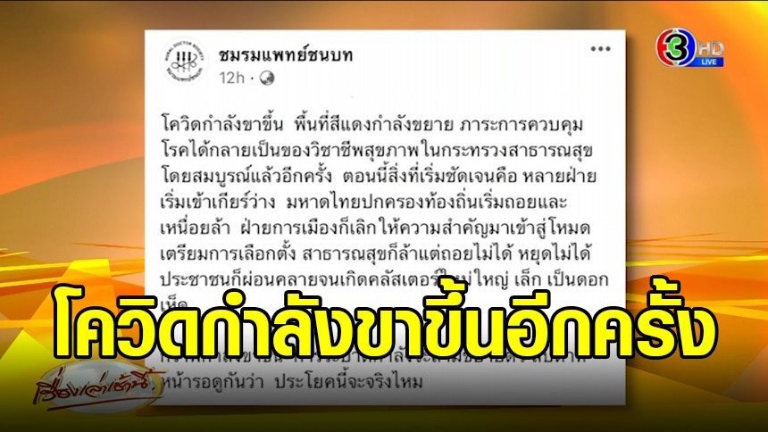 แพทย์ชนบท เตือนยอด ATK +หลักหมื่น โควิดกำลังขาขึ้นอีกครั้ง แต่หลายฝ่ายกำลังเกียร์ว่าง