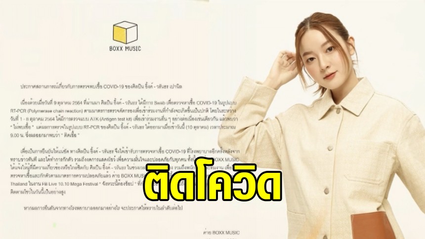 นักร้องสาว อิ้งค์ วรันธร ได้ออกมาโพสต์แจ้งว่าตนเองตรวจพบว่า ติดเชื้อโควิด -19 โดยทางต้นสังกัดค่าย BOXX MUSIC ได้ออกจดหมายแจ้งข่าวบอกว่า เมื่อวันที่ 9 ตุลาคม อิ้งค์ได้เข้ารับการตรวจหาเชื้อแบบ RT-PCR เพื่อเตรียมตัวไปทำงานตามปกติ