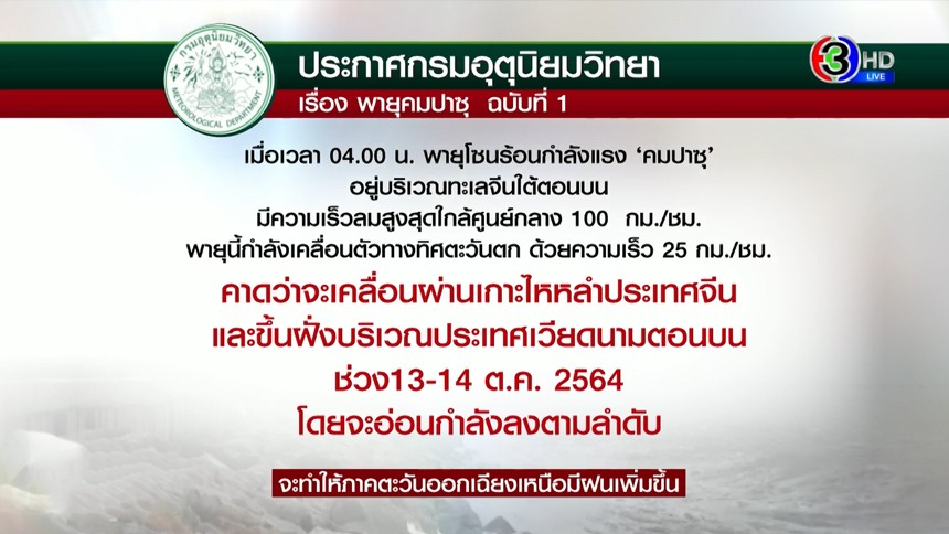 ประกาศกรมอุตุนิยมวิทยา "พายุคมปาซุ" ฉบับที่ 1