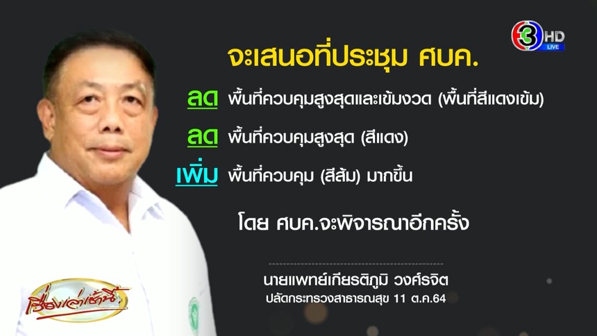 ทั้งนี้จะมีการเสนอที่ประชุม ศบค. ลดจำนวนจังหวัดพื้นที่สีแดงเข้ม หรือพื้นที่ควบคุมสูงสูงและเข้มงวดลง พื้นที่ควบคุมสูงสุด หรือสีแดงก็จะลดลง โดยจะไปเพิ่มพื้นที่ควบคุม หรือสีส้มมากขึ้น ซึ่งยังมี 3 โซนพื้นที่ หรือ 3 สีอยู่ และจะมีผลต่อการทำกิจการ กิจกรรม มีการผ่อนคลายมากขึ้น โดย ศบค.จะพิจารณาอีกครั้ง ส่วนจะอนุญาตนั่งดื่มเครื่องดื่มแอลกอฮอล์ในร้านได้หรือไม่นั้น ยังไม่มีการพิจารณาเรื่องนี้