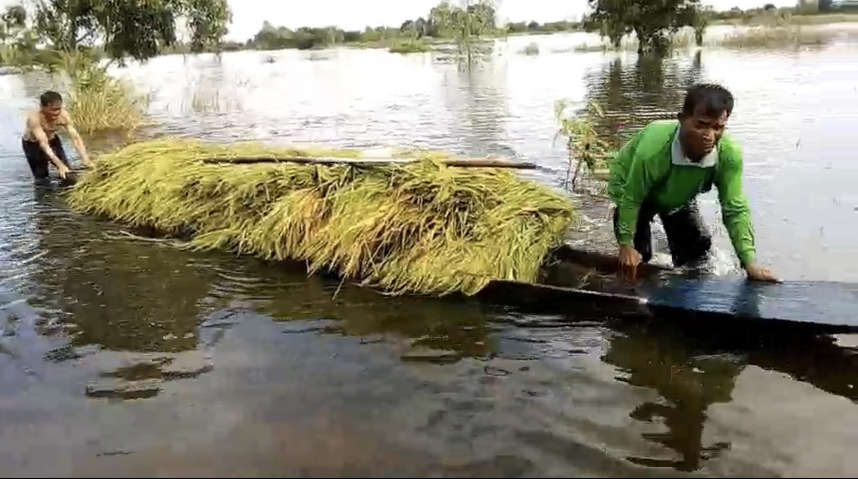 นางลำไย หมุนอุดม อายุ 54 ปี บ้านเลขที่ 29/1 ม.1 กล่าวกับผู้สื่อข่าวว่า ปีนี้น้ำจากลำน้ำมูลไหลหลากและเอ่อเข้าท่วมข้าวอย่างรวดเร็ว ทำให้ต้องรีบตัดสินใจเร่งเก็บเกี่ยวข้าวให้ทัน ก่อนที่จะถูกน้ำท่วมเสียหายหนัก ทั้งนี้ นางลำไยกล่าวว่า ตนทำนาปลูกข้าวหอมมะลิ พันธุ์ กข 15 อยู่ 7 ไร่ ตอนนี้ถูกน้ำท่วมไปทั้งหมดแล้ว จึงตัดสินใจอ้อนวอนเพื่อนบ้าน ให้มาช่วยเก็บเกี่ยวกันอย่างทุลักทุเล เพราะน้ำได้ขึ้นสูงเร็วมาก เกี่ยวเสร็จต้องใช้เรือในการลำเลียง ระยะทางไกลกว่า 300 เมตร ส่วนข้าวที่ได้มาก็ยังเขียวสดอยู่ ได้มาแล้วก็ต้องรีบนำไปตาก คงจะได้ข้าวไว้กินอยู่ไม่ถึง 10 กระสอบปุ๋ย นางลำไยกล่าว