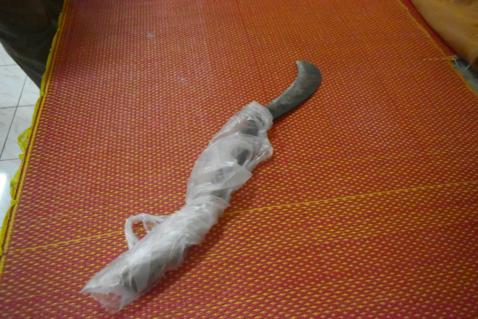 แต่ระหว่างทางเมื่อเดินผ่านหน้ากุฏิของพระอีกรูป เห็นมีดพร้าตั้งอยู่จึงได้หยิบและเดินเข้าไปฟันเข้าใบหน้าทันที 1 ครั้ง ก่อนจะมีการยื้อแย่งมีดกัน และมีพระอีกรูปเข้ามาห้าม ก่อนที่ตนจะเดินไปหาหัวหน้าสำนักสงฆ์พร้อบอกว่าตนพลาดไปแล้ว ขอให้ช่วยแจ้งตำรวจให้หน่อย ตนรู้สึกผิดกับเหตุการณ์ที่เกิดขึ้น