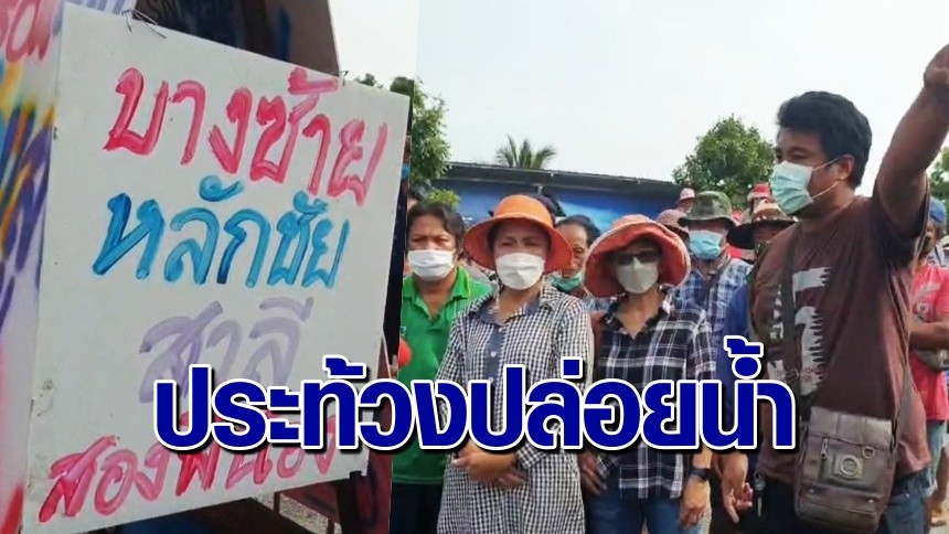 เมื่อช่วงสายที่ผ่านมาชาวบ้านใน 2 จังหวัดสุพรรณบุรี อำเภอสองพี่น้อง และบางปลาม้า จังหวัดอยุธยาอำเภอลาดบัวหลวง อำเภอบางซ้าย และอำเภอเสนา จำนวนกว่า 200 คน รวมตัวประท้วงชลประทานจังหวัดพระนครศรีอยุธยาและชลประทานพระยาบันลือ ไม่ยอมปล่อยระบายน้ำออกลงไปทางตอนใต้ของคลองพระบันลือ ที่มีระบบพนังคันกั้นน้ำคอนกรีตป้องกันไม่ให้น้ำไหลไปท่วม กทม.และปริมณฑล