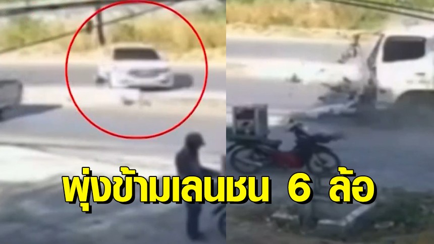 นาทีระทึก กระบะซิ่งเสียหลักพุ่งข้ามเลน ชนประสานงาหกล้อ คนขับเสียชีวิต