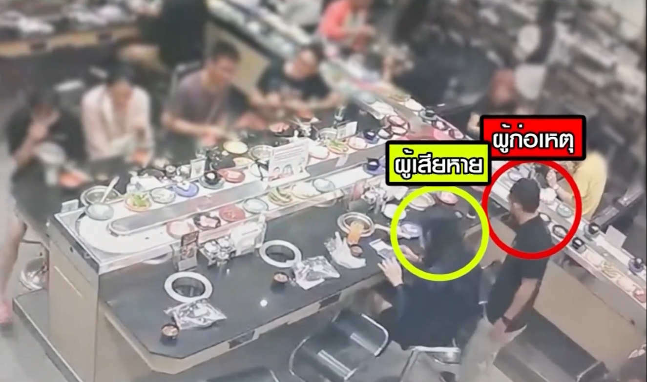 วงจรปิดจับภาพชายเสื้อดำ เข้ามาทานร้านชาบู โดยมากับสาวสองเสื้อดำที่นั่งข้างกัน เป็นภาพหลักฐานที่สาวสอง ผู้เสียหายนำไปใช้แจ้งความตำรวจ หลังถูกชายหลอกขโมยโทรศัพท์มือถือ ไอโฟน 12 promax หนีหายไป