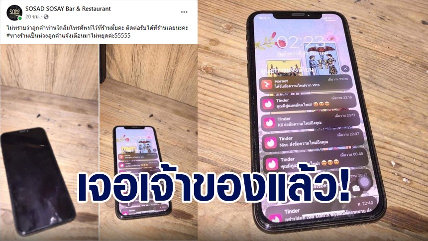 เจอเจ้าของแล้ว! ร้านอาหารตามหาลูกค้าลืมมือถือ แอปหาคู่เด้งไม่หยุด จนเป็นไวรัล