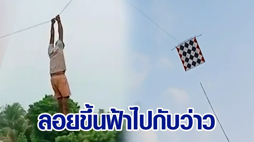 แต่มีชายคนหนึ่ง ไม่ยอมปล่อย ยังจับเชือกและทำท่ากระโดด ไปตามแรงดึงของว่าวอย่างสนุกสนานอยู่คนเดียว โดยหารู้ไม่ว่า กระแสลมได้กระชากให้ว่าวลอยกลับขึ้นไปอีกครั้ง ทำให้ ชายคนดังกล่าว ค่อยลอยขึ้นไปอยู่บนฟ้าตัวเปล่าๆ ไม่มีเชือกนิรภัยแต่อย่างใด ท่ามกลางความตกใจของผู้ที่อยู่ในเหตุการณ์ พากันส่งเสียงโวยวายลั่น (คลิป ช่วงกระโดดลง)ขณะที่ชายดังกล่าว ค่อยลอยขึ้นไปบนท้องฟ้าอยู่สักพัก ก่อนที่ผู้คนในบริเวณนั้นช่วยดึงว่าวลงมาให้ต่ำลงมา จนชายปล่อยมือจากเชือก ลงสู่พื้นดินอย่างอ่อนแรง ชนิดที่ลุกไม่ขึ้น เคราะห์ดีได้รับบาดเจ็บเพียงเล็กน้อย