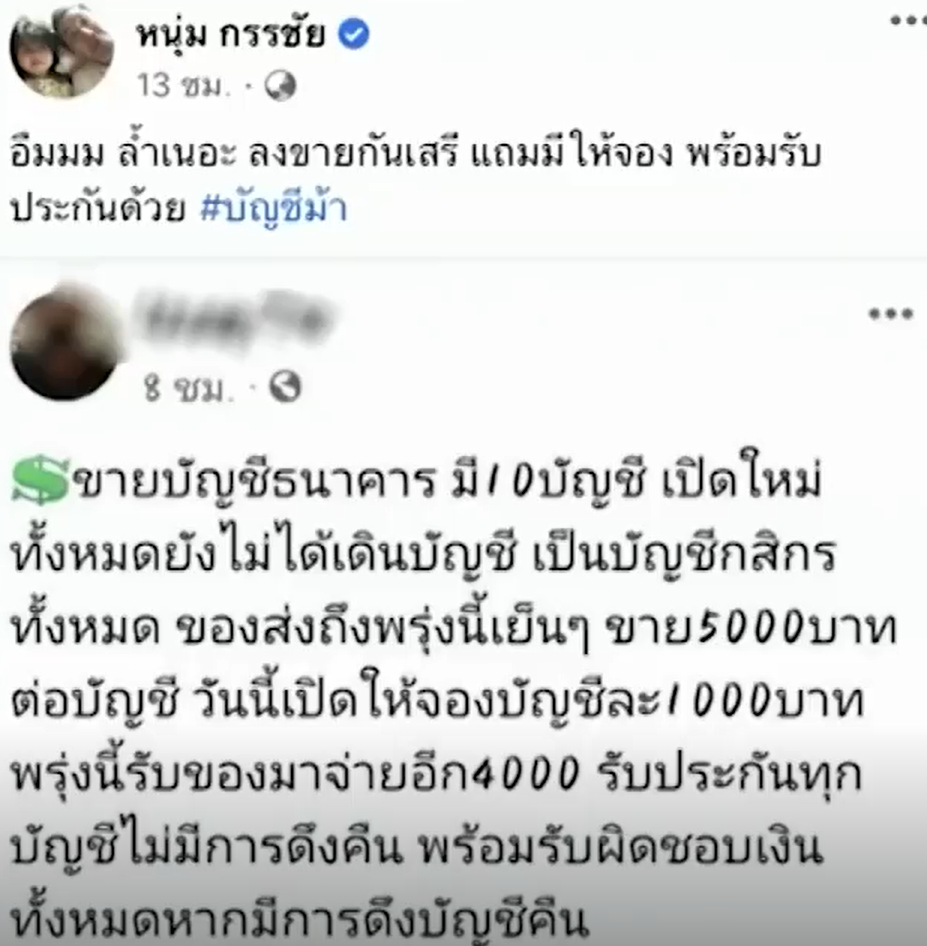 มิจฉาชีพเปิดขาย 'บัญชีม้า' ออนไลน์ ไม่เกรงกลัวกฎหมาย แถมรับประกันไม่มีดึงเงินคืน