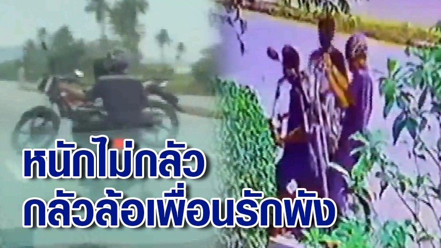 ภาพสุดประทับใจ ของเพื่อนรักนักศึกษาเทคนิคชลบุรี หลังรถจักรยานยนต์เกิดยางรั่ว เพื่อนกลัวบดแล้วล้อจะพังเสียหาย ยอมให้เพื่อนรักยกรถซ้อนท้ายไปร้านปะยางทั้งคนทั้งรถ