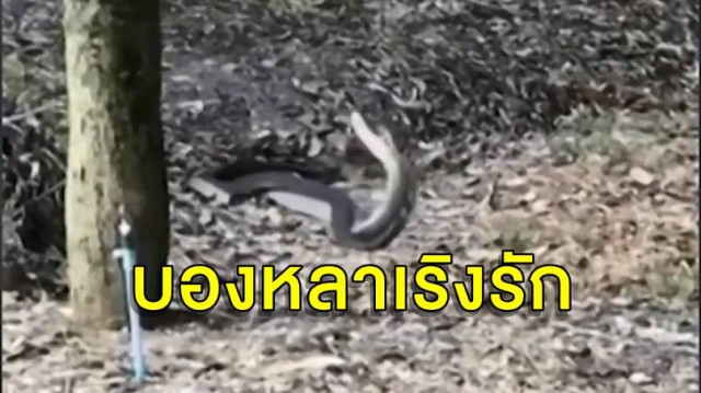 เปิดคลิป งูจงอางยักษ์ยาว 5 เมตร ชูคอพลอดรัก ผสมพันธุ์กันในสวนทุเรียน