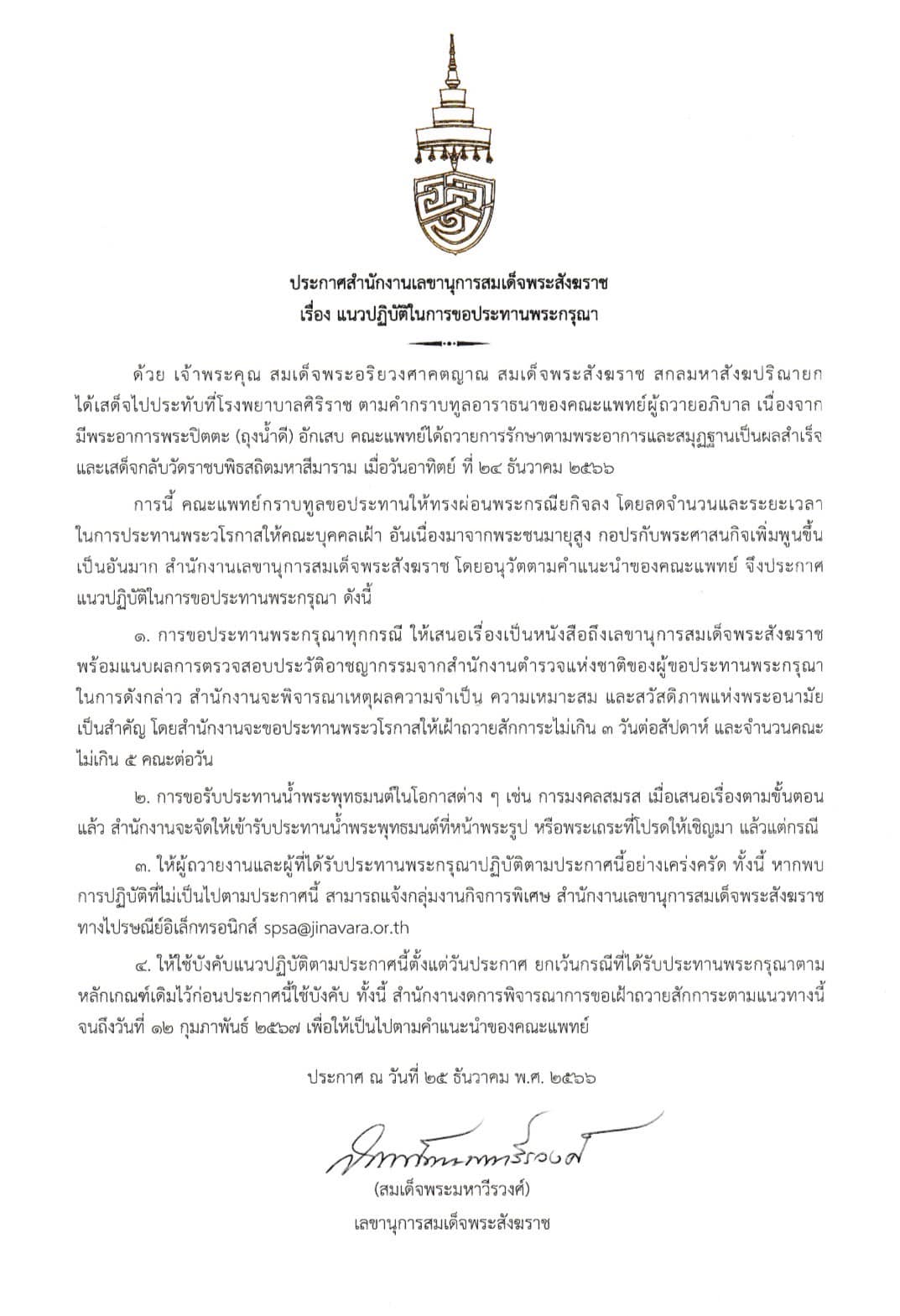 ประกาศ ณ วันที่ ๒๕ ธันวาคม พ.ศ. ๒๕๖๖