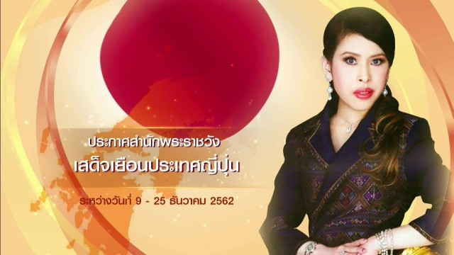 ประกาศสำนักพระราชวัง ด้วยสมเด็จพระเจ้าน้องนางเธอ เจ้าฟ้าจุฬาภรณวลัยลักษณ์ อัครราชกุมารี กรมพระศรีสวางควัฒน วรขัตติยราชนารี จะเสด็จเยือนประเทศญี่ปุ่น ระหว่างวันที่ 9 ถึงวันที่ 25 ธันวาคม พุทธศักราช 2562
