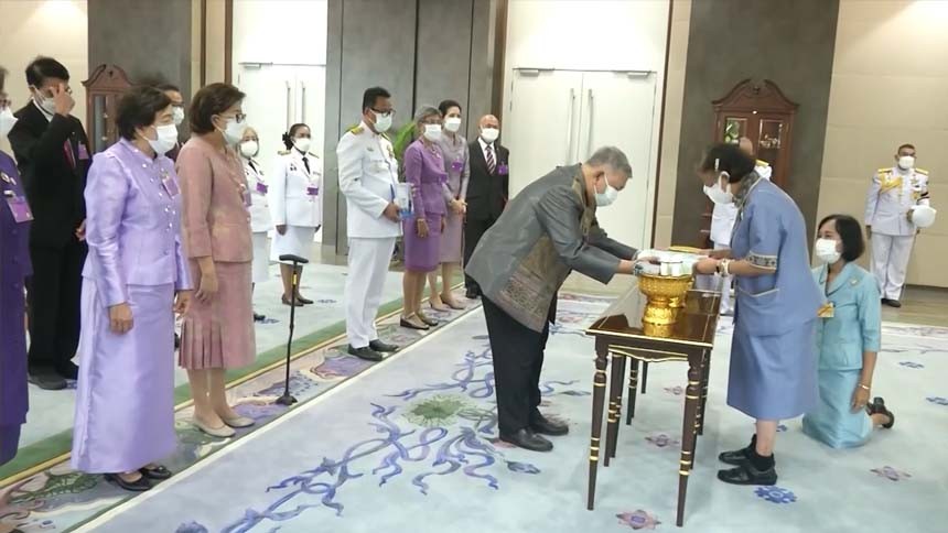 นำ นางสาวเพ็ญพิชชา จันทร์ประเสริฐ ผู้ได้รับพระราชทานทุนมูลนิธิอานันทมหิดล แผนกวิทยาศาสตร์ ประจำปี 2564 เฝ้าทูลละอองพระบาท กราบถวายบังคมลา ไปศึกษาต่อในระดับปริญญาโท สาขาเคมีอินทรีย์ด้านการค้นพบยา ณ มหาวิทยาลัยคอลเลจลอนดอน สหราชอาณาจักร