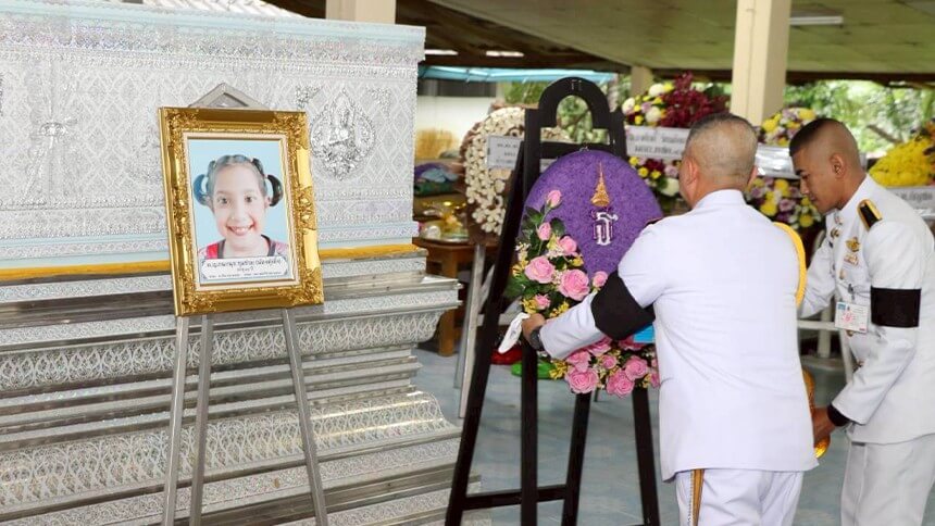 สมเด็จพระกนิษฐาธิราชเจ้า กรมสมเด็จพระเทพรัตนราชสุดาฯ สยามบรมราชกุมารี พระราชทานพวงมาลาแก่นักเรียนโรงเรียน ตชด. เสียชีวิตจากเหตุดินโคลนถล่มทับบ้าน ในพื้นที่ จ.สตูล