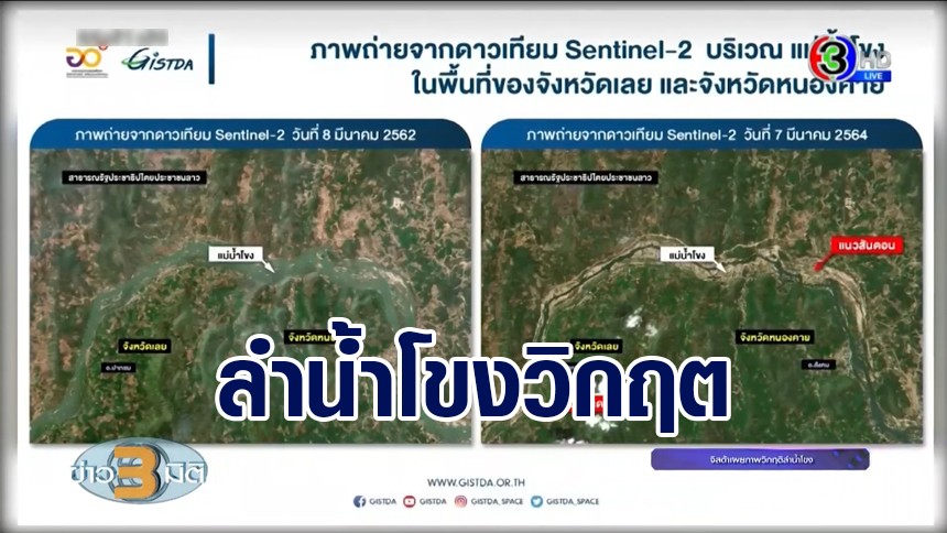 หนึ่งในประเด็นที่ข่าว 3 มิติ เกาะติดมาต่อเนื่องคือ สถานการณ์การผันผวนของน้ำแม่โขง ซึ่งน้ำขึ้น-ลงผิดปกติ จนกระทบต่อระบบนิเวศ และหลายหน่วยงานใช้คำว่าเข้าขั้นวิกฤต ล่าสุดสำนักงานพัฒนาเทคโนโลยีอวกาศและภูมิสารสนเทศ หรือจิสด้า เผยแพร่ภาพผ่านดาวเทียม เปรียบเทียบสถานการณ์น้ำโขง 3 ปีย้อนหลัง พร้อมชี้ให้เห็นว่า เขื่อนในแม่น้ำโขง มีผลกระทบต่อแม่น้ำสายนี้มากกว่าจะเป็นปรากฏการณ์ธรรมชาติเพียงอย่างเดียว