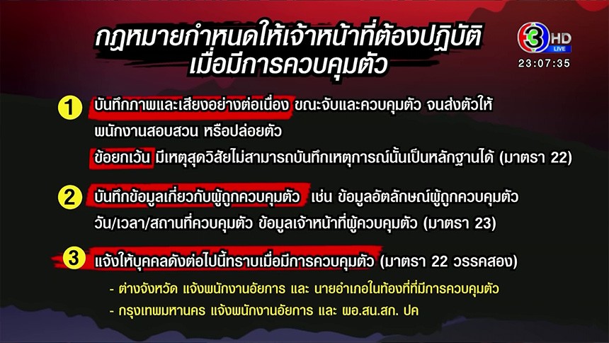 1.ระหว่างจับกุมเเละควบคุมตัว ให้บันทึกภาพเเละเสียงต่อเนื่อง ยกเว้น มีเหตุสุดวิสัย