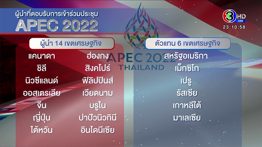 กระทรวงการต่างประเทศได้ยืนยันความพร้อมถึงการจัดการประชุมความร่วมมือทางเศรษฐกิจเอเชียแปซิฟิก หรือ เอเปค 2022 ที่จะเริ่มขึ้นอย่างเป็นทางการในอีก 4 วันข้างหน้านี้ โดยนายกรัฐมนตรีเตรียมผลักดันเป้าหมายการสร้างเศรษฐกิจแบบ BCG เข้าหารือกับชาติสมาชิก ที่ขณะนี้มีผู้นำเขตเศรษฐกิจ 14 เขตตอบรับการเข้าร่วมแล้ว