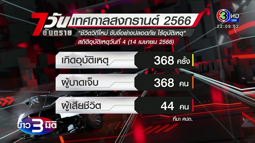 สรุปสถิติ วันที่ 4 ของช่วง 7 วันอันตรายเทศกาลสงกรานต์