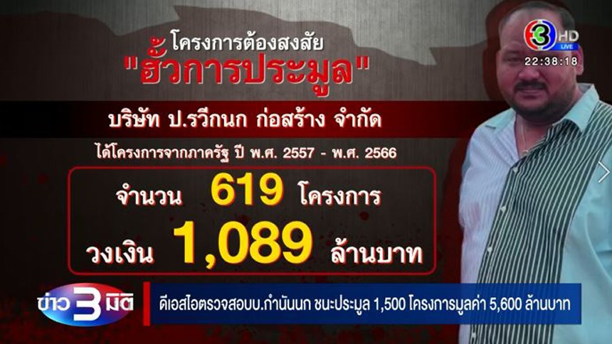 บริษัท 2 บริษัท ซึ่งมีครอบครัวของกำนันนกเป็นเจ้าของ มักประมูลแบบผิดปกติ โดยกรมสอบสวนคดีพิเศษ หรือดีเอสไอ ได้ตรวจสอบ 1,500 โครงการทั่วประเทศมูลค่ากว่า 5,600 ล้านบาท