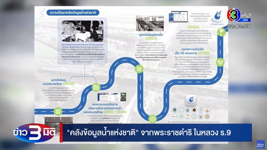 จากคอมพิวเตอร์พีซี ความจุ 1 เทเลไบท์ มาเป็นศูนย์คอมพิวเตอร์ความจุ 1 แสน เทเลไบท์ กลายเป็นคลังข้อมูลน้ำแห่งชาติ ที่ได้มาตรฐานระดับโลกและเป็นต้นแบบให้หลายประเทศรวมถึงองค์กรระหว่างประเทศอย่าง World Bank สะท้อนถึงความสำคัญของการบริหารจัดการน้ำ ที่มีทั้งในเว็บไซต์ thaiwater.net และแอปพลิเคชั่น thai water ช่วยประชาชนวางแผนการเกษตรกรรม ใส่ปุ๋ย ใช้น้ำ ได้อย่างแม่นยำขึ้น ซึ่งหลังจากเปิดใช้มา 3 ปี มีการเข้าใช้ข้อมูลกว่า 13 ล้านครั้งแล้ว เป็นสิ่งที่ยืนยันถึงแนวทางพระราชดำริของในหลวงรัชกาลที่ 9 ที่ทรงอยากเห็นการใช้ประโยชน์และลงมือทำ