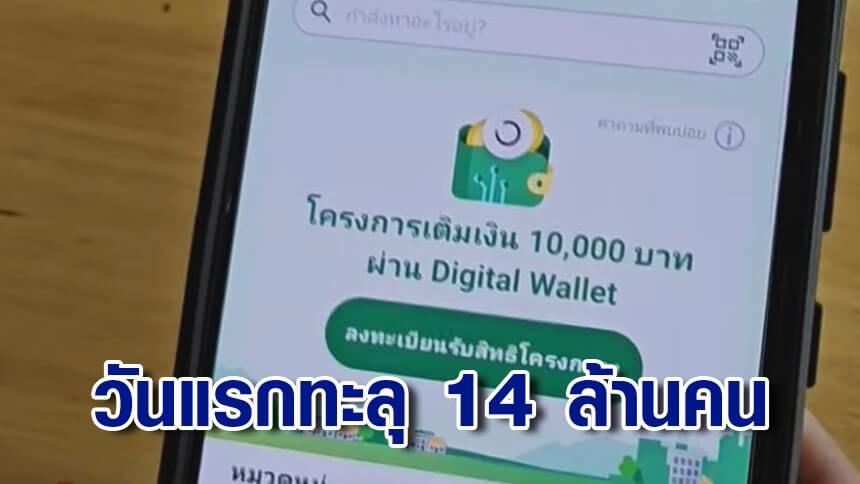 วันแรกในการเปิดลงทะเบียนเงินดิจิทัลวอลเล็ต มีประชาชนลงทะเบียนแล้วกว่า 14 ล้าน 4 แสนคน รัฐบาลคาดการณ์ว่าจะมีผู้เข้าร่วมโครงการมากกว่าเป้าหมายที่วางไว้ ยืนยันว่าระบบการใช้งานแอป-ทางรัฐ มีประสิทธิภาพ
