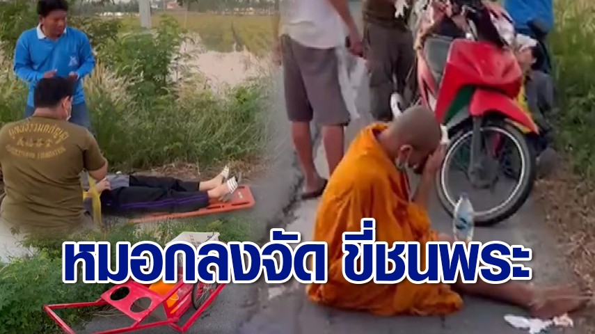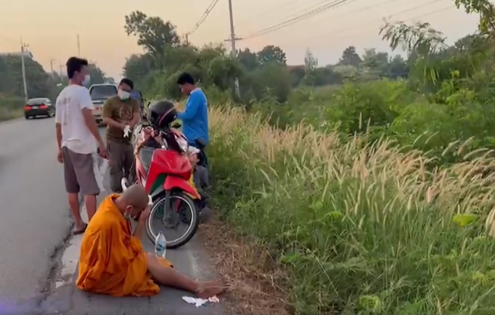 สาวโรงงานซิ่งจยย.ไปทำงาน เฉี่ยวชนพระขณะออกบิณฑบาต ริมถนนทำให้ได้รับบาดเจ็บทั้ง 2 ฝ่าย หลังหมอกลงจัดมองไม่เห็น
