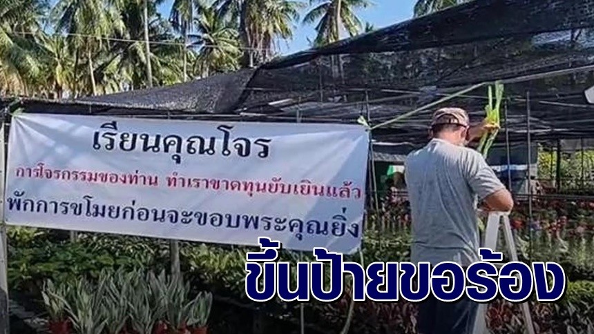 เจ้าของร้านต้นไม้ ขึ้นป้ายขอร้องโจร วอนเหลือให้ขายสักต้น หลังโดนติดต่อกัน 10 คืน