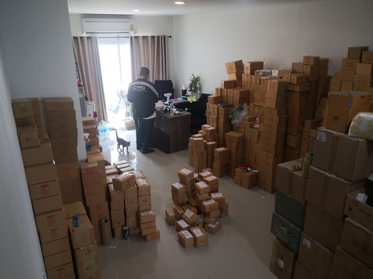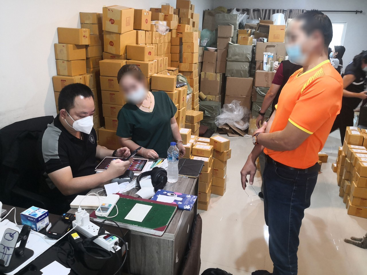 โดยพบหญิงชาวเวียดนาม แสดงตนเป็นผู้ดูแลบ้านหลังดังกล่าว จากการตรวจสอบ บ้านหลังนี้ใช้เป็นสถานที่เก็บและแพ็คบรรจุผลิตภัณฑ์เครื่องสำอางส่งให้กับลูกค้า จึงทำการตรวจยึดผลิตภัณฑ์เครื่องสำอางที่ต้องสงสัยว่าผลิตภัณฑ์ปลอมรวมกว่า 18 ยี่ห้อดัง มูลค่ากว่า 70,000,000 บาท เป็นของกลางนำส่งพนักงานสอบสวน กก.4 บก.ปคบ. ดำเนินคดีตามกฎหมายต่อไป