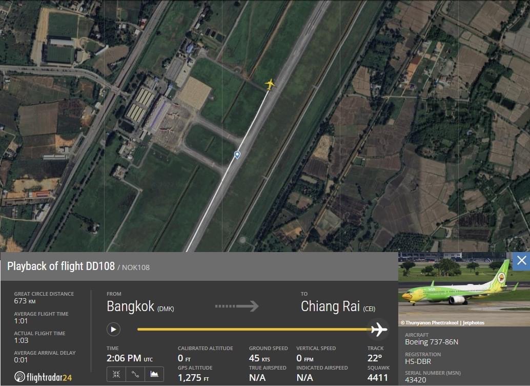 เมื่อวันที่ 30 ก.ค. 65 เครื่องบินของสายการบินนกแอร์ ให้บริการในเที่ยวบินที่ DD108 เส้นทางดอนเมือง-เชียงราย พร้อมผู้โดยสาร 163 คน และลูกเรือ 6 คน ออกเดินทางจากท่าอากาศยานดอนเมือง เวลา 20.03 น. และถึงท่าอากาศยานแม่ฟ้าหลวงเชียงราย เวลา 21.06 น. ขณะลงจอดท่าอากาศยานมีฝนตกหนัก หลังจากลงจอดที่ท่าอากาศยานนานาชาติแม่ฟ้าหลวงเชียงราย เครื่องบินได้ไถลออกนอกทางวิ่ง