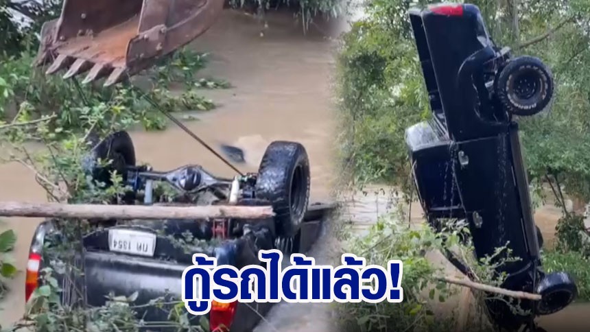 จนท.กู้แล้ว กระบะถูกน้ำป่าซัดจมหายใต้น้ำนาน 3 วัน