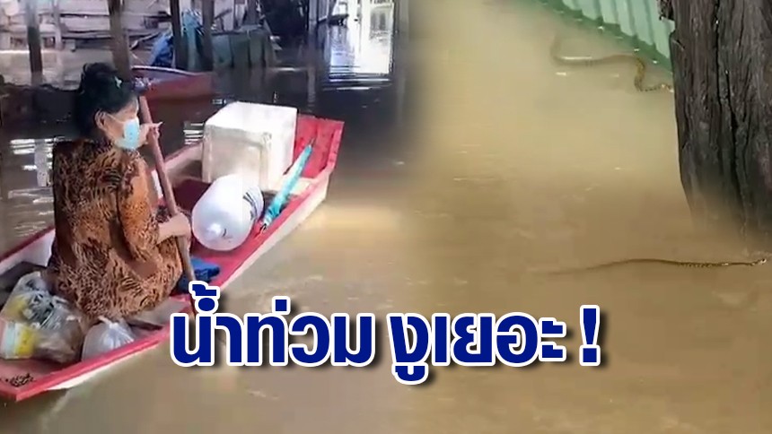 เกาะเกร็ดอ่วม! ชาวบ้านเดือดร้อน โอดปีนี้น้ำเยอะต้องใช้เรือสัญจร แตกตื่นเจองูว่ายน้ำหลายตัว