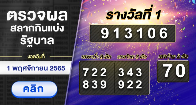 ผลสลากกินแบ่งรัฐบาล งวดวันที่ 1 พฤศจิกายน 2565