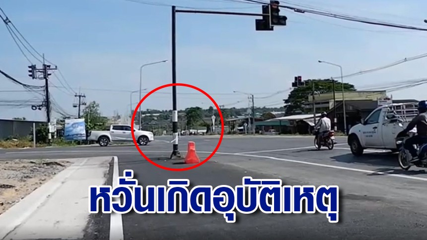 ผู้รับเหมาไม่ได้คุยกัน ? เสาสัญญาณจราจรโผล่กลางถนน ชาวบ้านหวั่นเกิดอุบัติเหตุ