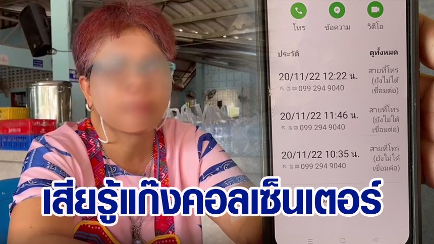 ด้วยความรู้เท่าไม่ถึงการณ์ ประกอบกับแก๊งคอลเซ็นเตอร์มีข้อมูลของตน และวันนั้นตนขายหมูอยู่ด้วย เป็นช่วงชุลมุนและตนก็ทำไม่ถูก จึงให้หลานชายคุยแทน หลานก็กดตามขั้นตอนที่แก็งคอลเซ็นเตอร์บอก ก่อนวางสายคอลเซ็นเตอร์บอกว่าทำรายการเสร็จแล้วเรียบร้อย ตนไม่ต้องจ่ายภาษีเพิ่มแล้ว สุดท้ายพอตนจะโอนค่าแชร์กลายเป็นว่าเงินหายจากบัญชีเกือบหมด พบถูกโอนเข้าบัญชีแก็งคอลเซ็นเตอร์หมดทุกธนาคาร สูญเงินเกือบ 3 หมื่นบาท