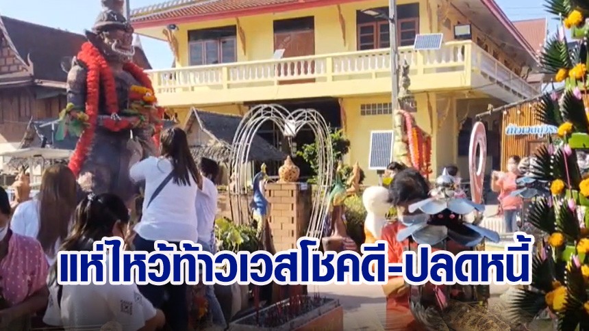 พิธีบวงสรวงท้าวเวสสุวรรณ โชคดี-ปลดหนี้ คึกคัก คนแห่ลุ้นเลขก้านธูป เลขหางประทัด ส่งท้ายปี