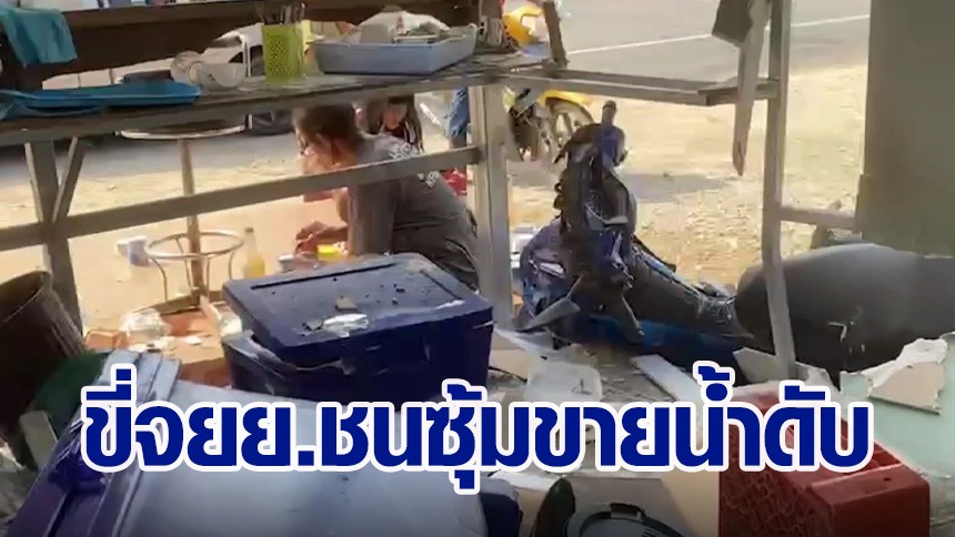 ชายขี่จยย. พุ่งชนซุ้มขายน้ำดับคาที่ แม่ค้าถูกน้ำร้อนลวกเจ็บสาหัส