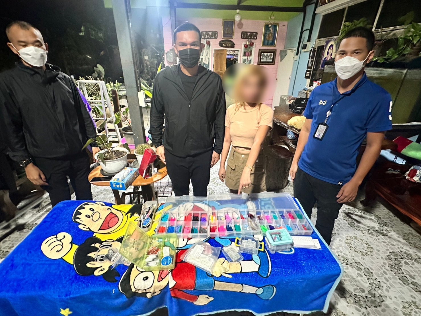 จึงให้สายลับติดต่อและได้นัดจัดฟันแฟชั่น โดยตกลงกันในราคา 2,500 บาท เมื่อสายลับมาถึงสถานที่เกิดเหตุ ผู้ก่อเหตุได้ให้สายลับนอนบนเตียงและเริ่มทำการจัดฟัน และมีการไลฟ์ผ่านทางเฟซบุ๊กขณะทำฟัน จากนั้นสายลับจึงส่งสัญญาณให้เจ้าหน้าที่ตำรวจที่รออยู่บริเวณใกล้เคียงเข้าตรวจค้นจับกุม โดยเจ้าหน้าที่ตำรวจได้แสดงตัวพร้อมได้ทำการตรวจค้น และได้ทำการจับกุมผู้ถูกจับ นำส่งพนักงานสอบสวน กก.1 บก.ปคบ. พร้อมได้ตรวจยึดเป็นของกลางดังนี้