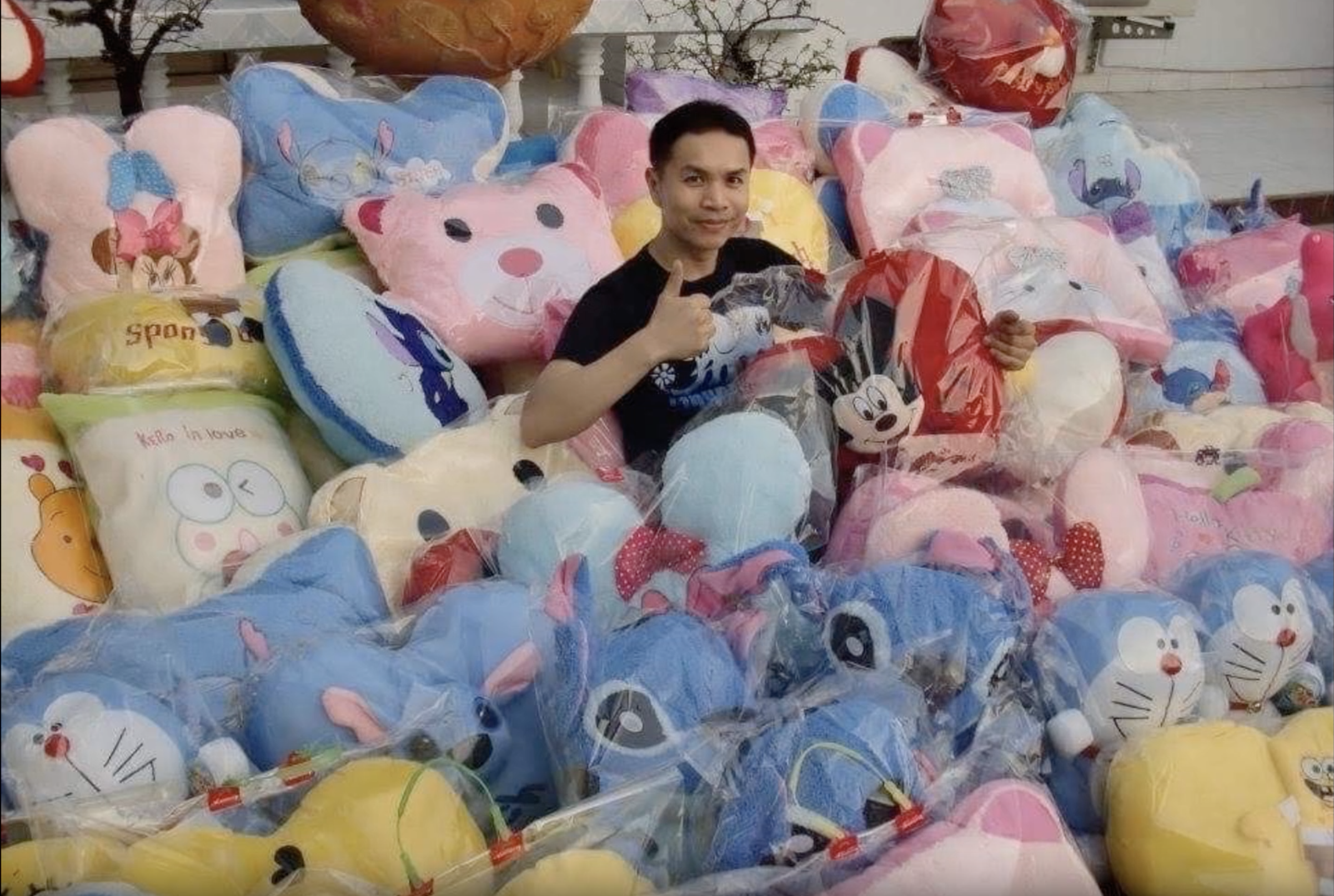 หนุ่มเจ้าของร้านขายข้าวมันไก่ชื่อดัง แต่ชอบปาเป้าลูกโป่งตามงานประจำปีต่างๆ และ หนุ่มรายดังกล่าว มีฝีมือความแม่นในการปาลูกโป่ง เรียกได้ว่าแทบจะไม่เคยพลาด แต่ละงาน ที่หนุ่มรายดังกล่าวไปตระเวนปาลูกโป่งเล่น ก็จะสามารถปาลูกโป่ง จนได้ตุ๊กตาตัวใหญ่มาเป็นจำนวนมาก หนุ่มรายดังกล่าวยังเผย เคยปาลูกโป่งได้ตุ๊กตา สูงสุดในค่ำคืนเดียว ถึง 200 ตัวก็มี จนบางร้านจำหน้าได้ และขอร้องไม่ให้เข้ามาปาลูกโป่งเล่นในร้าน