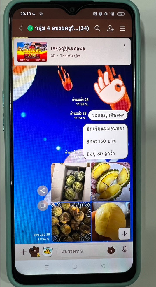 ตำรวจรวบตัว “เจ้าแม่ทุเรียนเก๊” หลอกขายทุเรียนหมอนทองคุณภาพดีราคาถูกบนโลกออนไลน์ จาก จ.จันทบุรี ราคา กก.ละ 100 - 150 บาท สาวกทุเรียนหลงเชื่อโดนกันเพียบ