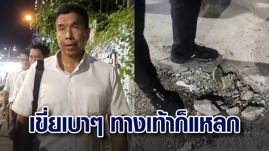 ‘ชัชชาติ’ ตรวจการก่อสร้างทางเท้า ลองใช้เท้าเขี่ยทดสอบคุณภาพ กลับพังในพริบตา