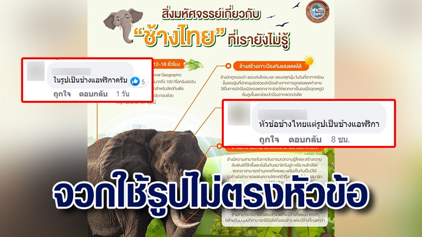 โซเชียลจวกเพจ อบจ.ระยอง โพสต์เรื่อง ‘ช้างไทย’ แต่ใช้รูป ‘ช้างแอฟริกา’ ใช้ภาพไม่ตรงกับหัวข้อ